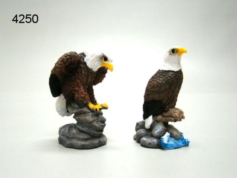 Deze gedetailleerde beeldjes tonen adelaars, gezeten op een rotsachtige basis. Gemaakt van hoogwaardig polystone, bieden deze beeldjes zowel duurzaamheid als een prachtig gedetailleerde afwerking. De adelaars hebben bruine veren, witte koppen, en gele snavels en klauwen. Met een hoogte van 6 cm zijn deze beeldjes ideaal om op een boekenplank of bureau te plaatsen. Perfect voor kunstliefhebbers en iedereen die de natuurlijke elegantie van adelaars waardeert.