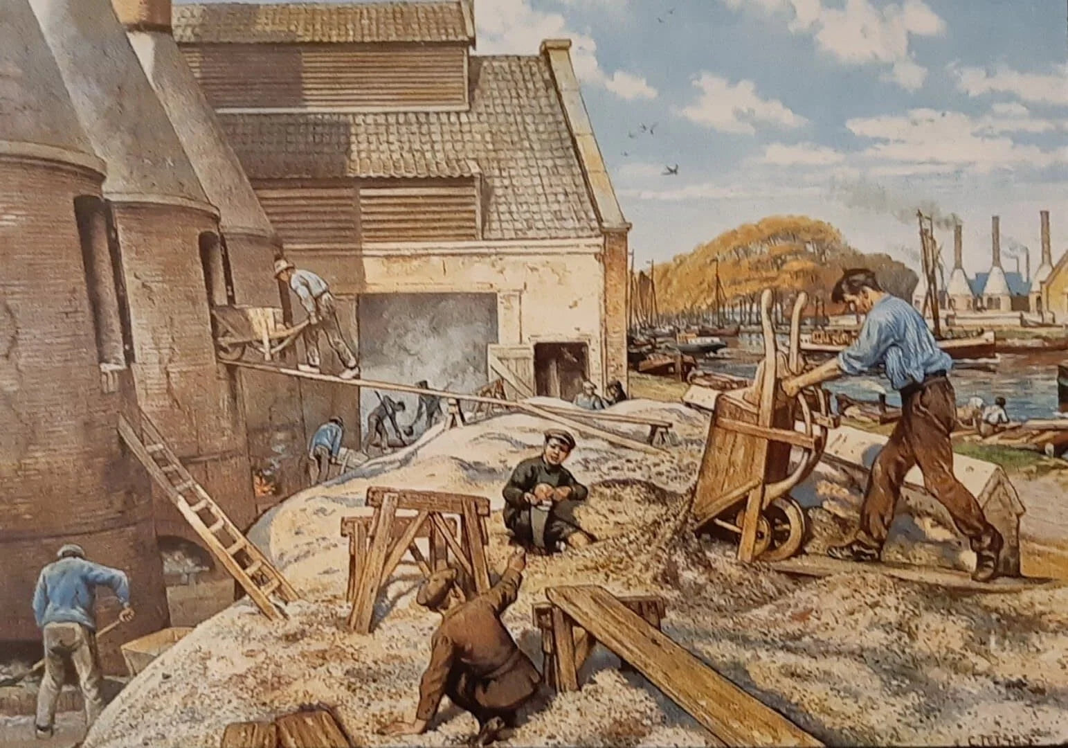 Deze ansichtkaart toont het historische ambacht van kalkovens, waar kalk werd gebrand voor bouw en landbouw. Een sfeervol beeld van hard werken en vakmanschap uit vroeger tijden.