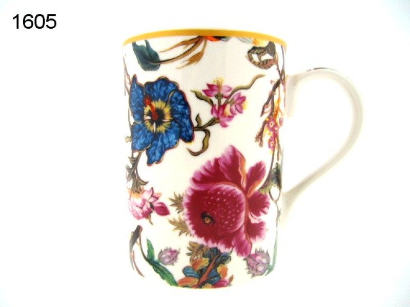 Deze mok is gemaakt van hoogwaardig keramiek en heeft een verfijnd en kleurrijk bloemenontwerp van William Morris, een beroemde ontwerper uit de 19e eeuw. De mok heeft een gele rand met een decoratief patroon, wat een extra vleugje charme toevoegt. Het is perfect voor het genieten van je favoriete warme dranken zoals koffie of thee. De mok is ongeveer 12 cm hoog en heeft een inhoud van ca 300 ml.