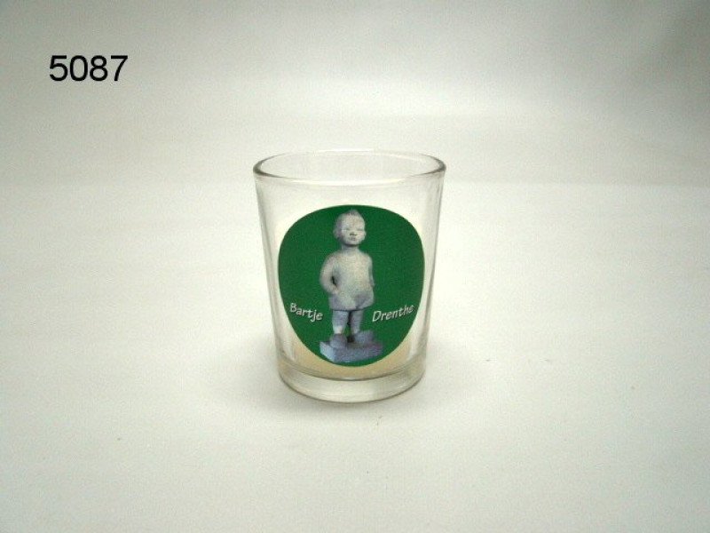 Dit kleine glazen sfeerlichtje heeft een afbeelding van het beroemde standbeeld van Bartje met de tekst "Bartje Drenthe" op een groene achtergrond. Het sfeerlichtje is ideaal om een gezellige en nostalgische sfeer in je huis te creëren. Het voegt een sfeervol accent toe aan elke ruimte en is perfect voor avonden thuis.