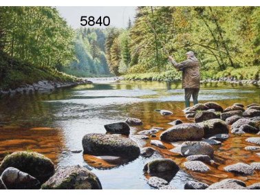 De "Best Fly Forward" wenskaart toont een serene natuurscène. Een visser staat geconcentreerd te vliegvissen in een ondiep stroompje, omgeven door een beboste omgeving. Voor in het water liggen rotsblokken die het tafereel een authentieke en rustieke uitstraling geven. De kaart, met een formaat van 200 x 140 mm, is perfect voor liefhebbers van vissen en de natuur.