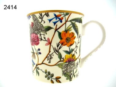 Deze mok is gemaakt van Chinees porselein en heeft een hoogte van ongeveer 9,5 cm. De mok is gedecoreerd met kleurrijke bloemenmotieven ontworpen door de Britse textielontwerper William Kilburn uit de 18e eeuw. De mok heeft een diameter van 9,5 cm en een fraaie handgreep aan de zijkant voor gemakkelijk vasthouden. Het porselein maakt de mok vaatwasmachinebestendig en magnetronbestendig. Deze mok is perfect voor warme dranken zoals koffie, thee of cacao.