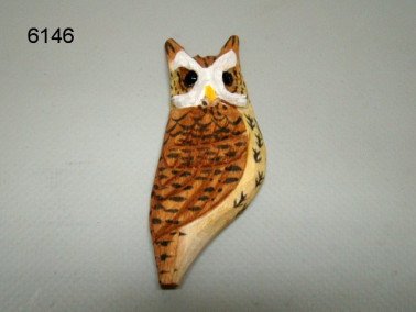 - Design: Handgesneden bosuil met natuurlijke houtafwerking