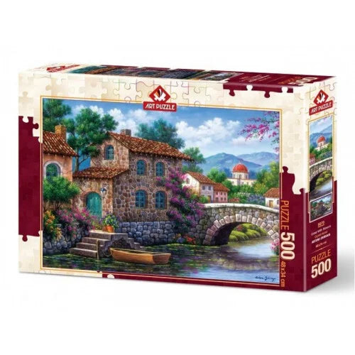Een sfeervolle puzzel met een prachtig uitzicht over een kanaal, rijk versierd met kleurrijke bloemen. Terwijl je de stukjes op hun plaats legt, komt een rustgevend tafereel tot leven dat je even meeneemt naar een schilderachtige plek vol charme en kleur.