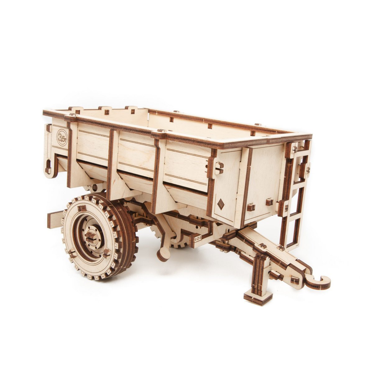 Bouw een realistisch landbouwvoertuig met deze DIY houten mechanische puzzel Trailer for Belarus 82 van Eco Wood Art. Dit bouwpakket vormt een gedetailleerde aanhanger die perfect past bij mechanische tractor-modellen uit dezelfde serie.