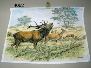 Deze theedoek met een prachtige tekening van edelherten voegt een vleugje natuur en elegantie toe aan je keuken. De gedetailleerde illustratie van de edelherten zorgt voor een rustieke en sfeervolle uitstraling, perfect passend bij een landelijk interieur.