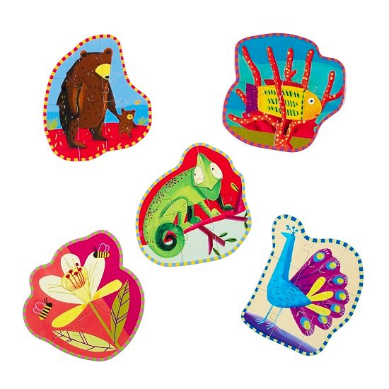 Deze set van vijf kleurrijke legpuzzels (3, 4, 6, 9 en 12 stukjes) neemt kinderen mee op ontdekkingstocht door het leven op aarde. Van kleine insecten en bloeiende planten tot dieren groot en klein β elk puzzeltje laat een ander stukje van onze prachtige wereld zien.