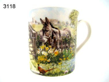 Een gezellige mok met een landelijke knipoog. Deze keramieken mok is voorzien van een sfeervolle tekening van een ezel achter een hek, met een rustige, natuurlijke achtergrond. Perfect voor koffie of thee, en een mooie aanvulling op je servies.