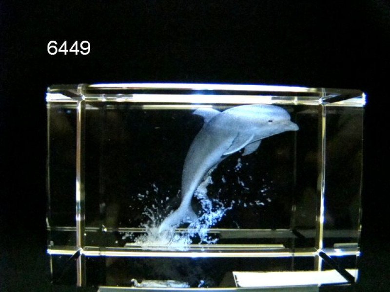 3D Laser Gravure van een springende dolfijn.