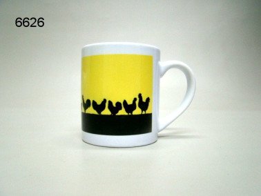Geniet van je favoriete drankje met deze stijlvolle mok met silhouetten van hennen en hanen. De gele achtergrond met zwarte silhouetten creëert een modern en toch rustiek design, perfect voor liefhebbers van landelijke thema's. Met een inhoud van ca. 300 ml biedt deze mok de ideale maat voor je koffie, thee of warme chocolademelk. Gemaakt van stevig materiaal, geschikt voor dagelijks gebruik en vaatwasserbestendig. Een charmante aanvulling op je servies!