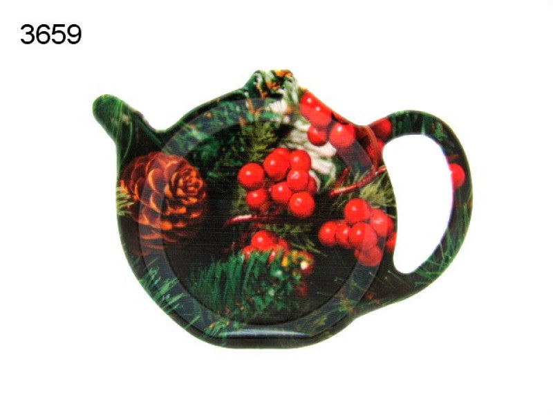 Een vrolijk theetipje met afbeelding van rode bessen. Praktisch en decoratief, ideaal om je theezakje neer te leggen en je tafel een vleugje kerst te geven.