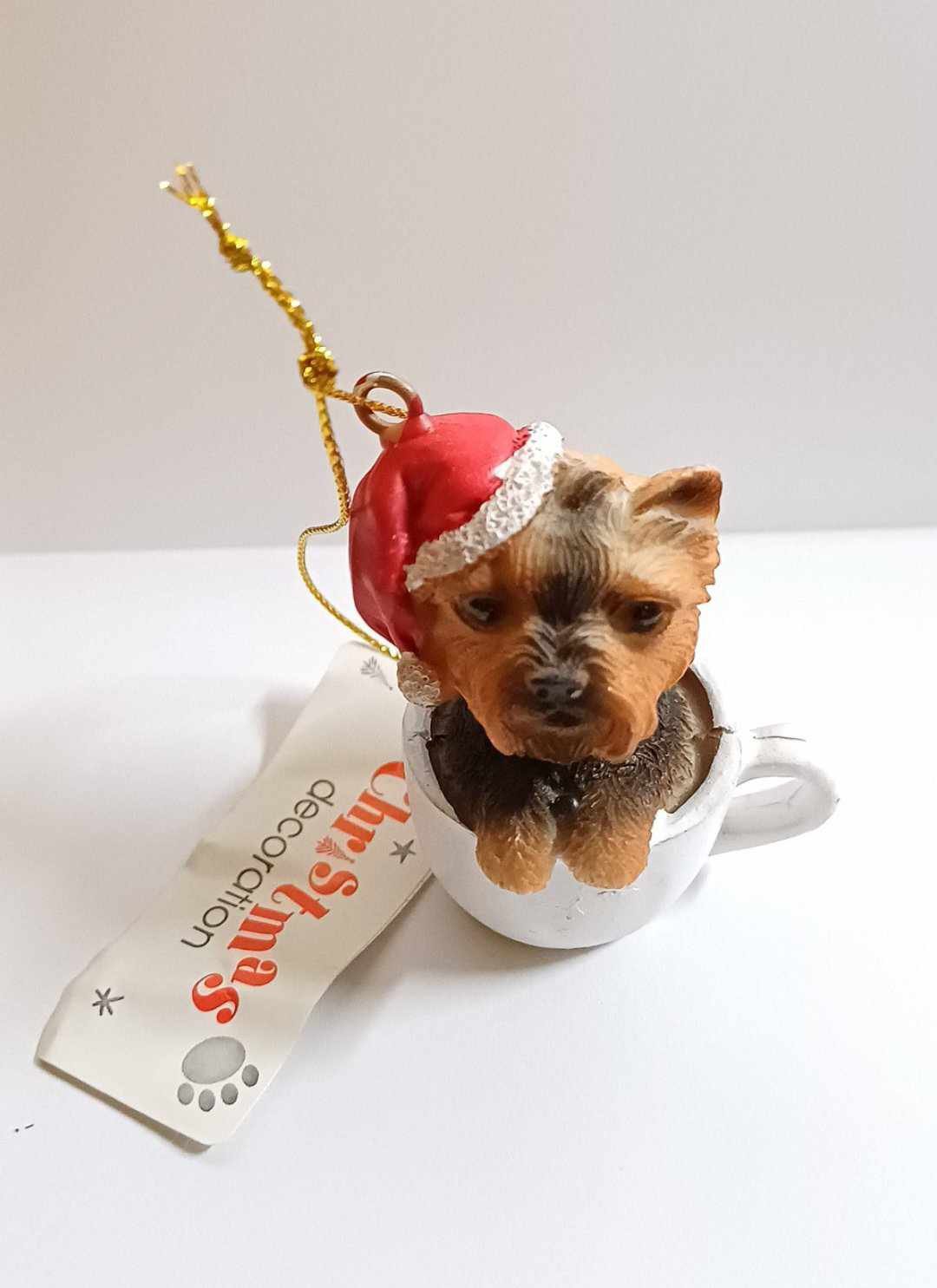 Leuke kersthanger van Polystone van een Yorkshire terriër in een theekopje.