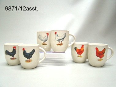 Deze collectie bevat twaalf unieke kleine mokken, elk met een afbeelding van een kip. Ze worden per stuk verkocht maar assorti uitgeleverd, wat betekent dat elke mok een verrassend en uniek ontwerp heeft. De mokken zijn gemaakt van hoogwaardig keramiek en hebben een inhoud van ongeveer 200 ml. Ze zijn geschikt voor de magnetron en vaatwasser. Met een hoogte van circa 8 cm zijn ze perfect voor het serveren van warme dranken of als decoratief item.