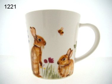 Voeg een vleugje natuur en charme toe aan je theetafel met deze prachtige konijnenmok. De mok is gemaakt van hoogwaardig keramiek en is ongeveer 9 cm hoog. Het ontwerp toont gedetailleerde illustraties van twee bruine konijnen, omringd door bloemen en een bij, wat een speels en rustiek effect geeft.
