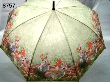 Deze charmante paraplu met fotoprint van konijnen brengt direct een glimlach op je gezicht, zelfs op de meest grijze regendag. De realistische afbeeldingen van zachte, nieuwsgierige konijntjes zorgen voor een warme, vriendelijke uitstraling.