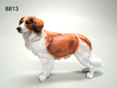 Dit prachtige beeldje van een staand Kooikertje (15 cm breed en 12 cm hoog) vangt de elegantie en vriendelijke uitstraling van dit geliefde Nederlandse ras. Het Kooikerhondje wordt afgebeeld in een attente houding, met subtiele details die de kenmerkende vacht, staart en expressie tot leven brengen.