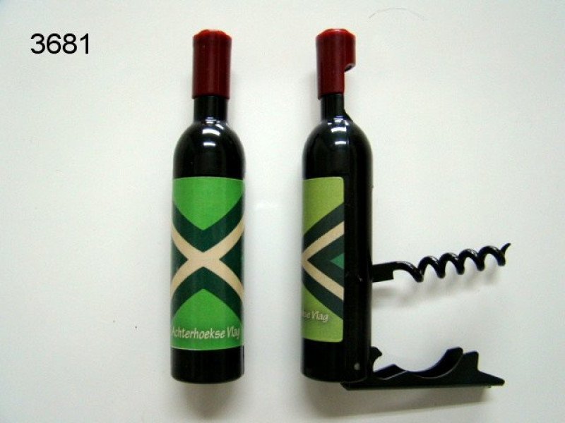 Een mooie "Achterhoekse Vlag" kurkentrekker die perfect is voor het openen van flessen en een stijlvolle, regionale touch aan je keuken of bar biedt. Deze kurkentrekker heeft een uniek ontwerp dat lijkt op een wijnfles, compleet met label in de kleuren van de Achterhoekse vlag. De kurkentrekker bevat een flesopener aan de zijkant en een schroefmechanisme voor het eenvoudig openen van wijnflessen.
