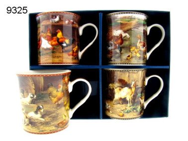 De Edgar Hunt Mokkenset, 4 stuks bevat vier prachtige porseleinen mokken, elk met een unieke illustratie van landelijke taferelen zoals schapen, kippen en andere dieren. De mokken hebben een diameter van ongeveer 9 cm en een inhoud van 300 ml, en zijn geschikt voor gebruik in de magnetron en vaatwasser.
