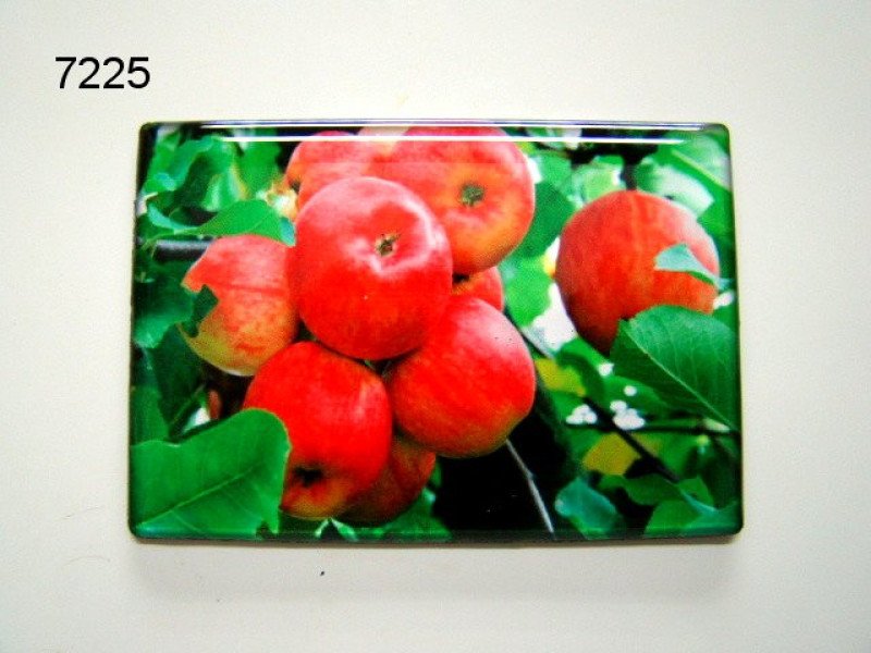 Deze rechthoekige magneet toont een levendige afbeelding van een tros rode appels die aan een boomtak hangen, omringd door groene bladeren. De magneet heeft een glanzende afwerking, wat de kleuren mooi laat uitkomen en een extra decoratieve touch aan je koelkast of magneetbord geeft. Perfect om notities of boodschappenlijsten vast te houden, en een geweldige manier om een beetje natuur in huis te brengen. Ideaal als souvenir of als cadeautje voor liefhebbers van fruitige accenten in hun huis.