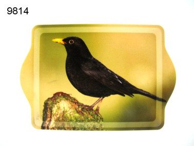 Het Merel dienblad klein (21 x 14,5 cm) is een charmante en praktische toevoeging aan elke tafel. Het dienblad toont een prachtige foto van een merel, rustig zittend op een steen, met een warme gele achtergrond die de vogel en zijn omgeving prachtig accentueert. De zwarte veren van de merel vormen een mooi contrast met de levendige achtergrond, waardoor dit dienblad een rustige en toch opvallende uitstraling heeft.