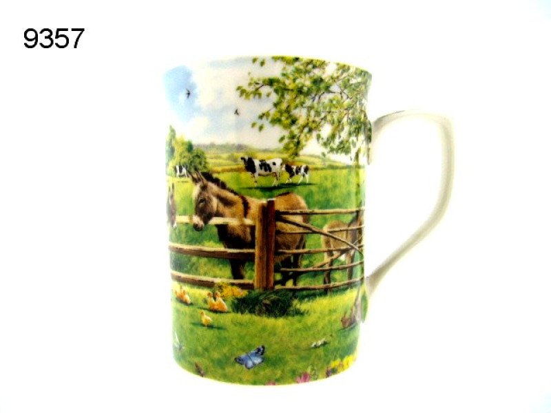 Stevige mok van Chinees porselein met afbeelding uit de serie donkey farm van Lesser & Pavey.