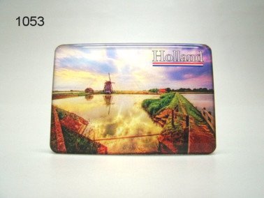 Breng een stukje Nederlandse charme naar je huis met deze prachtige magneet. De magneet heeft een afmeting van 5,5 x 8 cm en is gemaakt van stevig kunststof. Het ontwerp toont een levendige foto van een iconische windmolen aan het water, wat een serene en idyllische uitstraling geeft. De tekst "Holland" benadrukt de Nederlandse identiteit van het ontwerp.