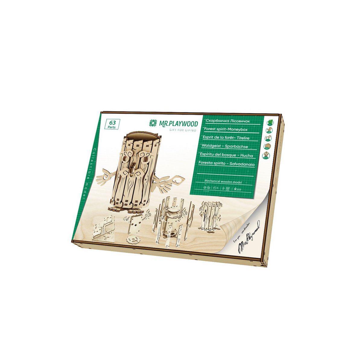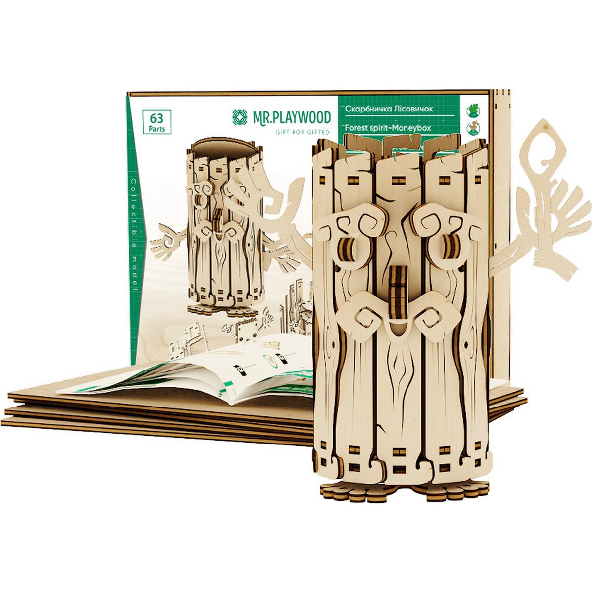 Met de Mr. Playwood 3D houten puzzel Forest Spirit Moneybox bouw je een uniek model dat creativiteit combineert met functionaliteit. Dit bouwpakket bestaat uit 63 nauwkeurig gesneden houten onderdelen die zonder lijm in elkaar gezet kunnen worden, waardoor een stevige en gedetailleerde spaarpot ontstaat. Dankzij de hogere moeilijkheidsgraad biedt het model een uitdagend en leuk bouwproject voor hobbyisten.
