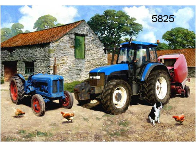 De wenskaart Old and New toont een krachtig contrast tussen twee moderne tractoren en een oude, verweerde boerenschuur. De glanzende, robuuste tractoren, met hun strakke lijnen en imposante ontwerp, staan trots geparkeerd op het erf. Hun nieuwe uiterlijk vormt een opvallend contrast met de schuur op de achtergrond, waarvan de houten stenen verweerd zijn en die tekenen van ouderdom vertoont. Het erf is eenvoudig en landelijk, met aarde onder de wielen van de tractoren. Deze kaart benadrukt de samensmelting van traditie en innovatie in het boerenleven, perfect voor liefhebbers van landbouw en moderne machines in een nostalgische setting.