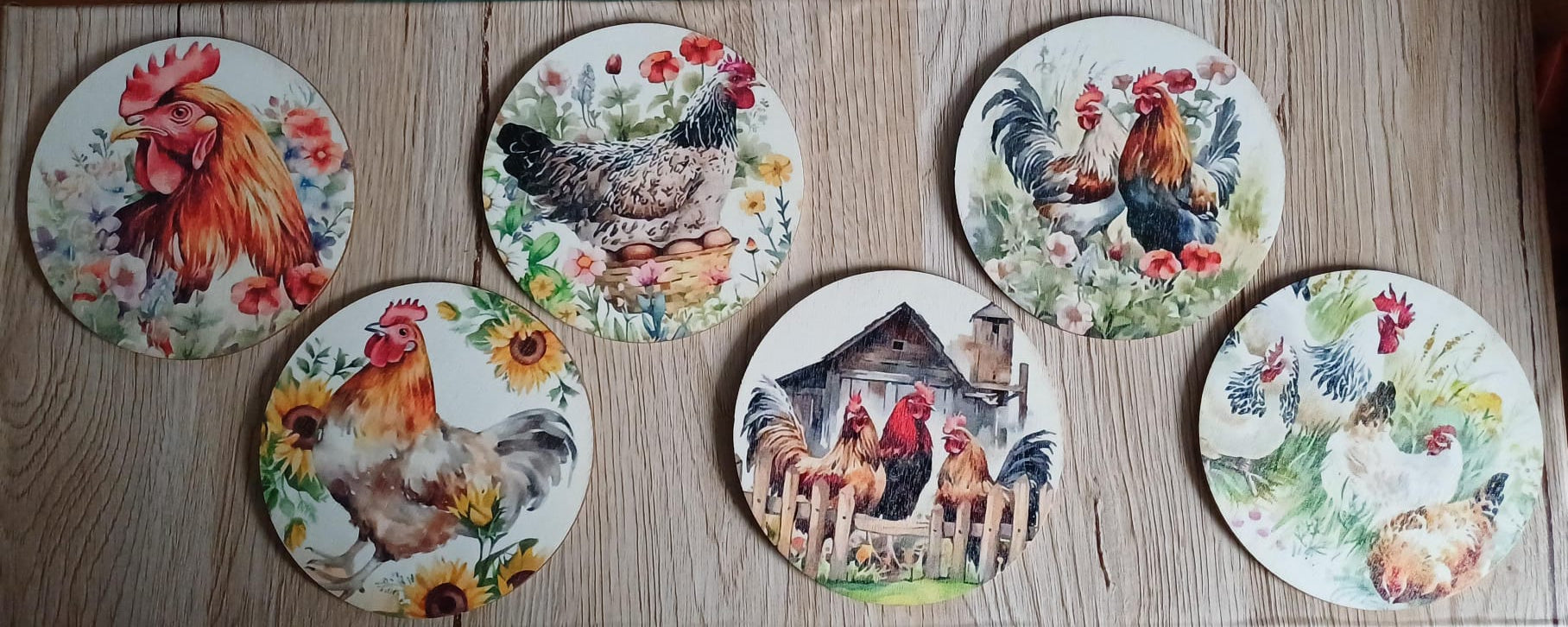 Onderzetters kippen, 6 stuks