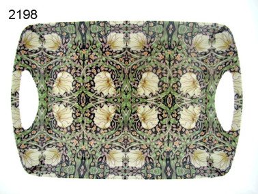 Dit dienblad is gemaakt van hoogwaardig kunststof en is versierd met een opvallend William Morris-ontwerp. Het ontwerp bestaat uit polychrome scrollende bladeren en bloemen, afgewerkt met een gouden rand voor een elegante uitstraling. De grote maten maken het dienblad ideaal voor het serveren van drankjes en hapjes tijdens feesten of bij het ontbijt. De handige handgrepen maken het gemakkelijk om te dragen.