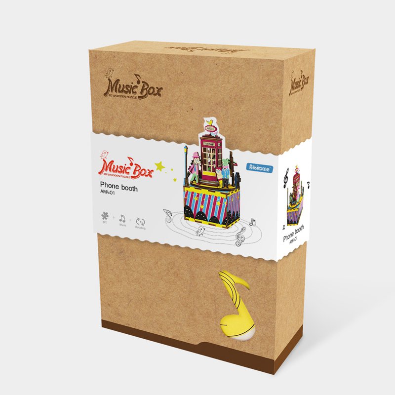 Breng een nostalgische sfeer in huis met deze DIY 3D houten muziekdoos Phone Booth. Dit compacte model in de vorm van een klassieke telefooncel combineert speelse details met een mechanisch muziekmechanisme.