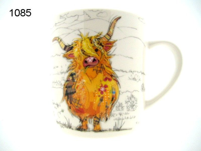 Een mok met karakter! Deze keramieken mok toont Hamish, een imposante Schotse hooglander, stijlvol vormgegeven in de herkenbare Bug Art-stijl: rijk gedetailleerd, met speelse patronen en warme kleuren. De mok ligt prettig in de hand en is perfect voor koffie, thee of warme chocolademelk.