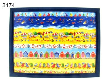 Geniet comfortabel van je thee of lunch op schoot met dit vrolijke schootkussen. De kleurrijke illustraties van bootjes, parasols, strandstoelen en strandhokjes brengen het strandgevoel bij je thuis. Het zachte kussen vormt zich naar je schoot, terwijl het stevige blad zorgt voor een stabiele ondergrond.