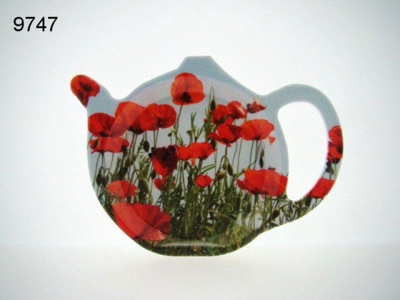Leuke theezakjes houder met de afbeelding van klaprozen.
