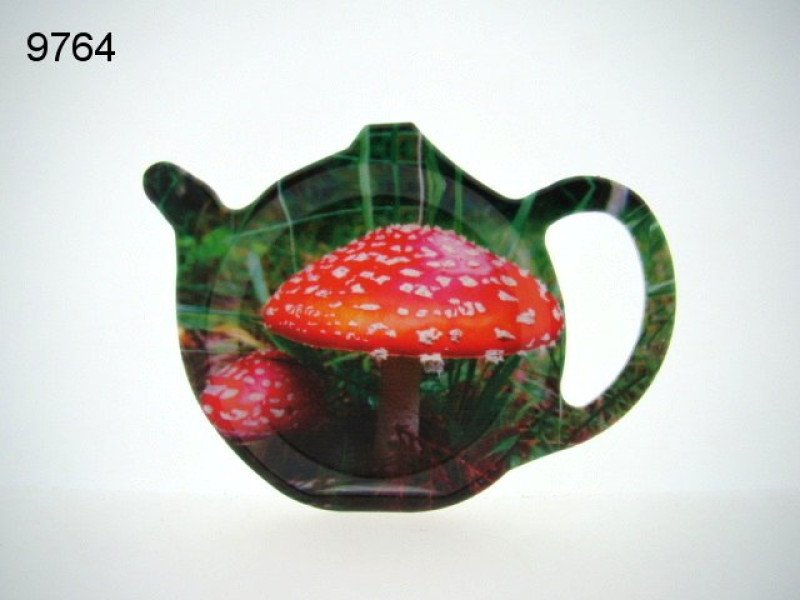 Leuke theezakjes houder met de afbeelding van paddenstoelen.