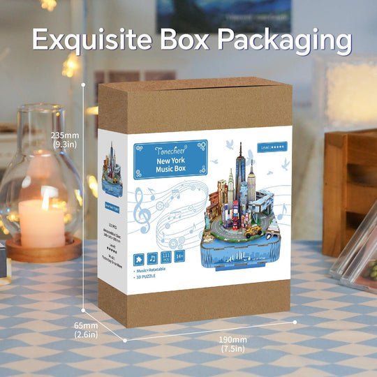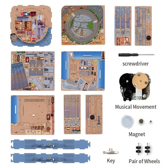 Breng de energie van de stad tot leven met deze DIY 3D houten muziekdoos New York. Dit sfeervolle model combineert iconische stadsdetails met een mechanisch muziekmechanisme dat de melodie Yesterday Once More afspeelt.