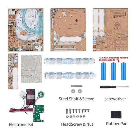 Wanneer de muziekdoos wordt geactiveerd speelt deze de melodie Katyusha, waardoor het miniatuur nog meer sfeer krijgt. Het model is opgebouwd uit nauwkeurig voorgesneden houten onderdelen die eenvoudig uit de platen gedrukt kunnen worden.