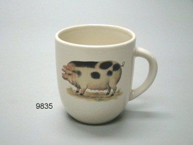 Deze kleine keramische mok is versierd met een leuke tekening van een varken. Met een hoogte van ongeveer 8 cm is deze mok ideaal voor het serveren van warme dranken zoals koffie of thee. De kleurrijke illustratie van het varken voegt een vleugje natuur en charme toe aan je tafelsetting.