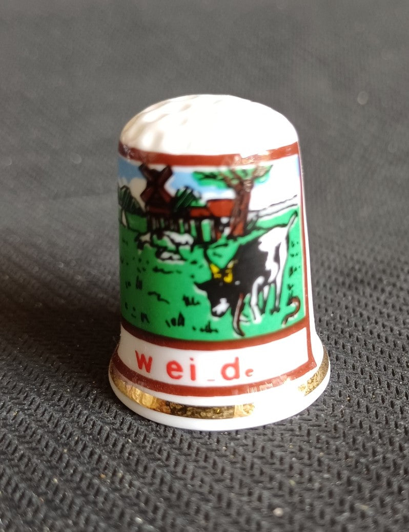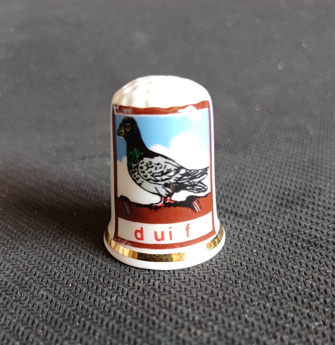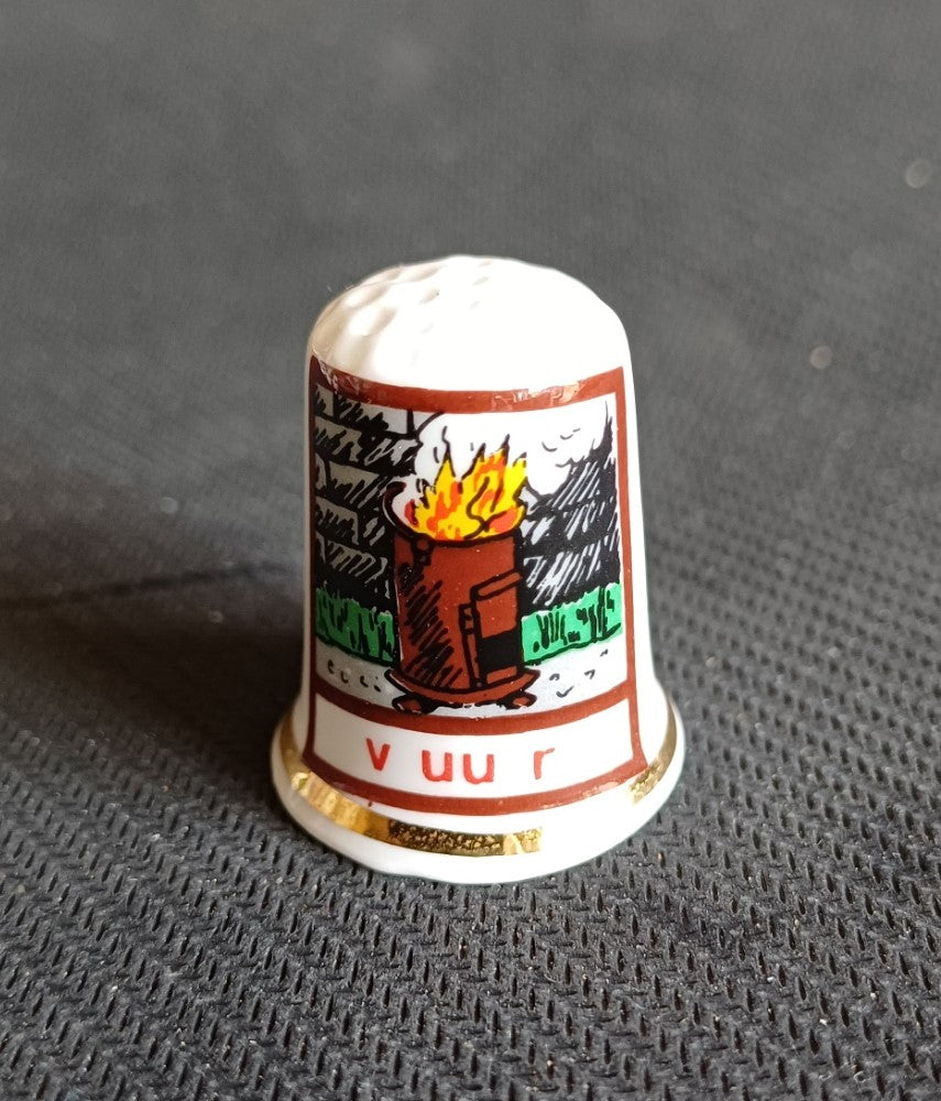 Dit prachtige vingerhoedje, gemaakt van fijn keramiek, is versierd met de iconische Aap, Noot, Mies illustraties, die generaties kinderen hebben geholpen leren lezen. Het vingerhoedje is een prachtig decoratief stuk en een uniek verzamelobject. De levendige kleuren en de bekende afbeeldingen voegen een vleugje nostalgie toe aan je verzamelcollectie. Ideaal voor liefhebbers van retro designs en als een bijzonder cadeau.