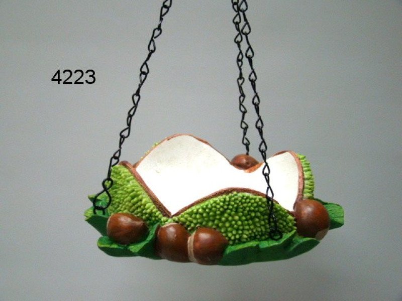 Een charmante voerhouder in de vorm van een kastanje, die iedere tuin meteen wat extra sfeer geeft. Dankzij de hanger (24 cm hoog) kun je hem gemakkelijk ophangen aan een boomtak, haak of voederpaal. De stevige constructie en de 18 cm doorsnede zorgen voor voldoende ruimte om de vogels in je tuin een smakelijke traktatie te bieden. Zo wordt voeren niet alleen praktisch, maar ook een vrolijke toevoeging aan je buitenruimte.