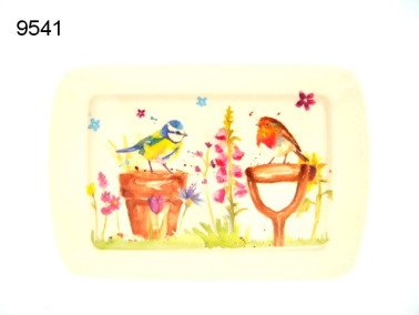 Het Vogel dienblad (21 x 14,5 cm) is een compact en stijlvol accessoire, versierd met prachtige getekende afbeeldingen van een roodborst en een pimpelmees. De natuurgetrouwe details en levendige kleuren brengen de schoonheid van deze vogels prachtig tot uiting.