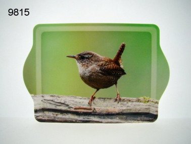 Het Winterkoning dienblad klein (21 x 14,5 cm) is een charmant en compact dienblad, versierd met een prachtige foto van een winterkoning die op een tak zit, tegen een levendige groene achtergrond. De natuurgetrouwe details en serene uitstraling maken dit dienblad tot een echte blikvanger.