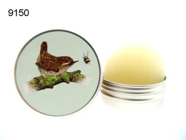 Een compact en stijlvol metalen blikje met daarin een rond lavendelzeepje. Het deksel is versierd met een gedetailleerde illustratie van een winterkoninkje dat op een tak zit, terwijl het nieuwsgierig naar een rondvliegend insect kijkt. De subtiele kleuren en het natuurthema geven het blikje een rustgevende en verfijnde uitstraling. Het lavendelzeepje heeft een zachte geur en verzorgende eigenschappen, perfect voor dagelijks gebruik of als decoratief item.