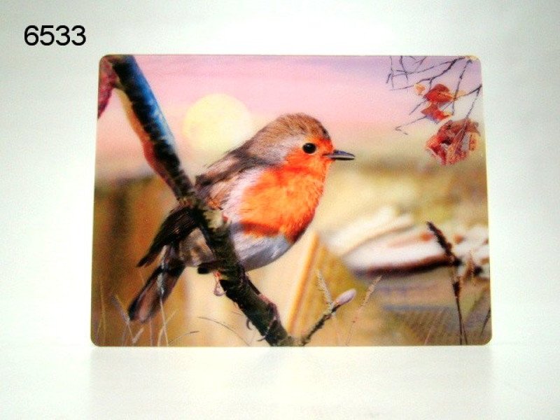 Een prachtige ansichtkaart met een roodborst in 3D. Afmeting 16 x 12 cm. Door het diepte-effect lijkt dit vrolijke vogeltje levensecht op de kaart aanwezig te zijn.