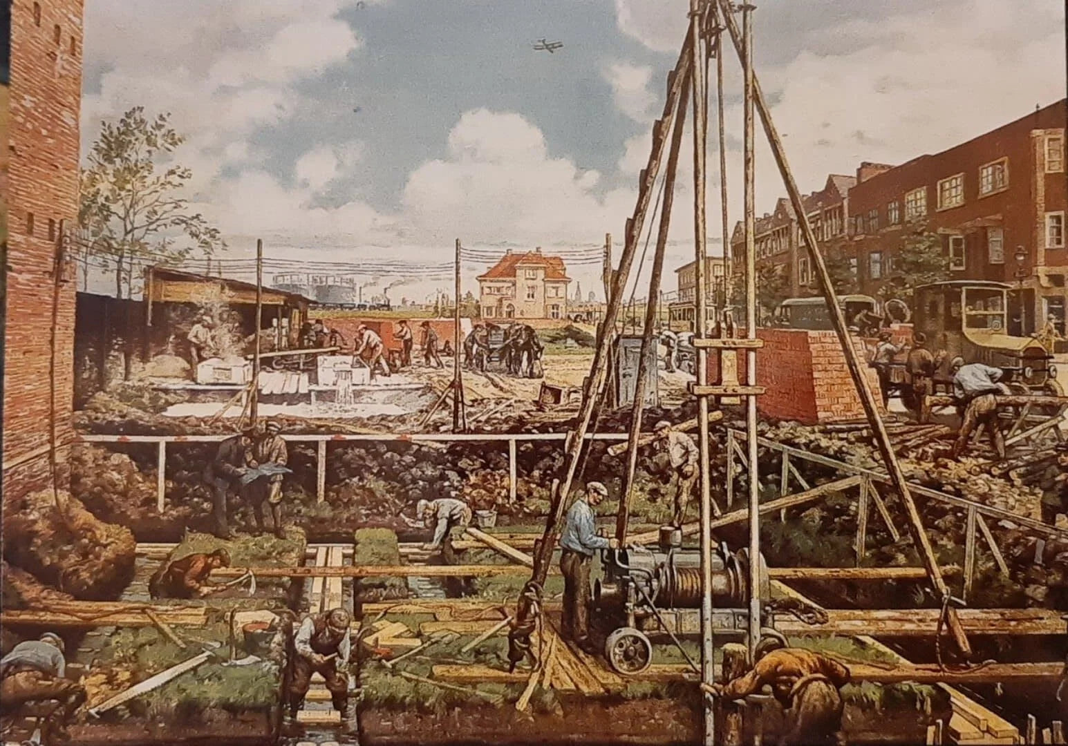 Deze ansichtkaart laat een historisch tafereel zien van arbeiders die aan het heien zijn, een prachtig inkijkje in traditioneel ambachtswerk. Perfect om te versturen, te verzamelen of als decoratie te gebruiken.
