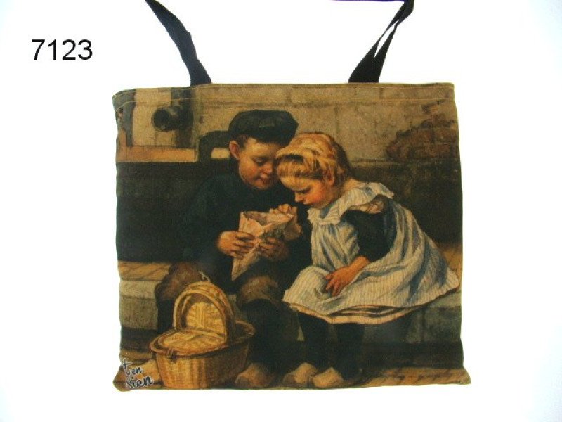 Stevige boodschappentas met een nostalgische afbeelding van Ot en Sien die suiker halen. Afmeting 39 x 34 cm. Praktisch formaat met ruime hengsels en herbruikbaar, dus een duurzaam alternatief voor plastic tasjes.