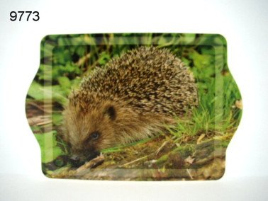 Dit kleine dienblad, met afmetingen van 21 x 14,5 cm, toont een prachtige foto van een egel in een natuurlijke omgeving, omringd door groen loof en gras. Het dienblad is perfect voor het serveren van kleine hapjes of drankjes en voegt een vleugje natuur toe aan je tafel. De gedetailleerde foto van de egel maakt het een charmant en praktisch item voor dagelijks gebruik.