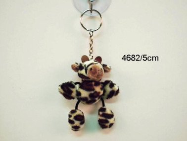 Deze schattige sleutelhanger toont een kleine pluchen giraffe met een hoogte van ongeveer 5 cm. De giraffe is bevestigd aan een metalen sleutelhanger met een ketting. Dit compacte en charmante accessoire is perfect voor het toevoegen van een vleugje speelsheid aan je sleutelbos of tas.