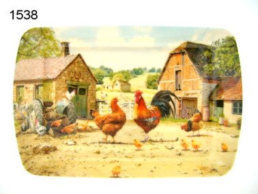 Dit dienblad is ideaal voor het serveren van drankjes, snacks of andere kleine lekkernijen tijdens bijeenkomsten met vrienden en familie. Het heeft afmetingen van 14 x 21,5 cm en is gemaakt van duurzame melamine. Het dienblad toont een afbeelding van een haan en een hen in een landschapsscène, wat een gezellige en rustieke uitstraling geeft aan je tafel.