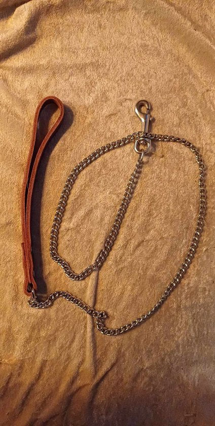 Met deze stoere kettinglijn kun je niet ongezien over straat. De kettinglijn heeft vele schakels en is voorzien van een leren handvat, wat zorgt voor een robuuste uitstraling. Deze hondenriem maakt het uitlaten voor zowel hond als baasje nog leuker.